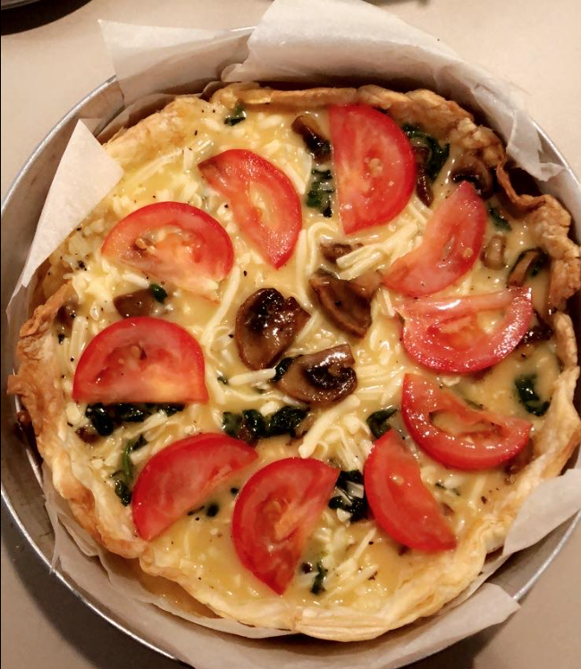 The best thing about making a quiche is that you can fill it with anything. This is vegetarian but you can add sliced ham or prosciutto.